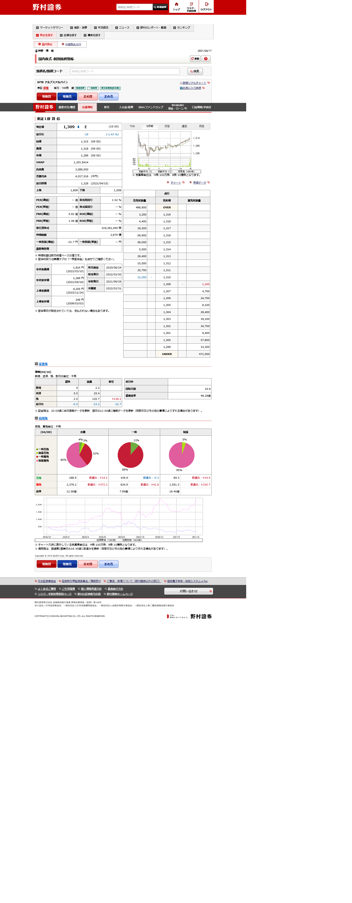 アルプスアルパインの個人投資家の売買予想
