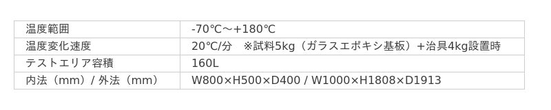 半導体パッケージの信頼性試験規格のJESD22-A104の要求事項である15℃/分以下の温度サイクル試験法および実装基板評価試験のデファクトスタンダードであるIPC-9701(15℃/分~20℃/分)に適合しています。