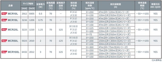 高電力タイプ「MCRSシリーズ」/低抵抗・高電力タイプ「MCRLシリーズ」