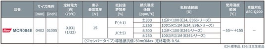 今後、「MCRSシリーズ」では、+155℃に対応した小型0603サイズ品の開発を予定しています。また、「MCREシリーズ」として、完全鉛フリータイプでよりコンパクトな0402サイズ品の供給も開始します。これにより、さらなる小型化へのニーズや環境志向による自主規制や輸出制限などへの対応も強化します。
