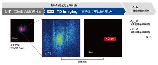 このたび、当社は保有するレーザ・光センサ・計測・画像処理・解析技術を応用し、PHEMOS-Xシリーズ用の新しい検出手法となるTD Imaging(ThermoDynamic Imaging)の開発に成功しました。このTD ImagingをPHEMOS-Xシリーズに搭載することで、生成AI用半導体などの、3次元構造化や微細化が進む先端半導体デバイスの故障箇所を高感度、高解像度で特定し、故障解析の成功確率を格段に向上することが可能となります。