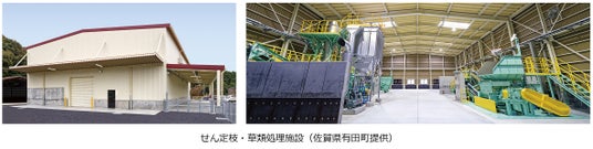 一方、新設のせん定枝・草類処理施設は、町内から持ち込まれたせん定枝や草類を、堆肥や敷料(家畜の寝床に敷くおがくず)などとして有効利用するもので、処理能力は5時間当たり1.2トン。せん定枝や草類は、受け入れヤードに貯留されたのち、破砕ライン、粉砕ラインで細かく処理され、町民向けに堆肥や家庭菜園の肥料として、また有田町地域の畜産農家向けに敷料などとして活用される予定です。