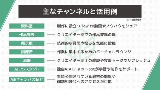また、MEキャンパスの新カリキュラムの先行体験など、クリエイターズギルド参加者限定の施策も展開していく予定です。今後の展開にご期待ください。