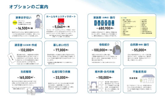 生前から利用できるものから死後に発生するものまで幅広いオプションをご用意