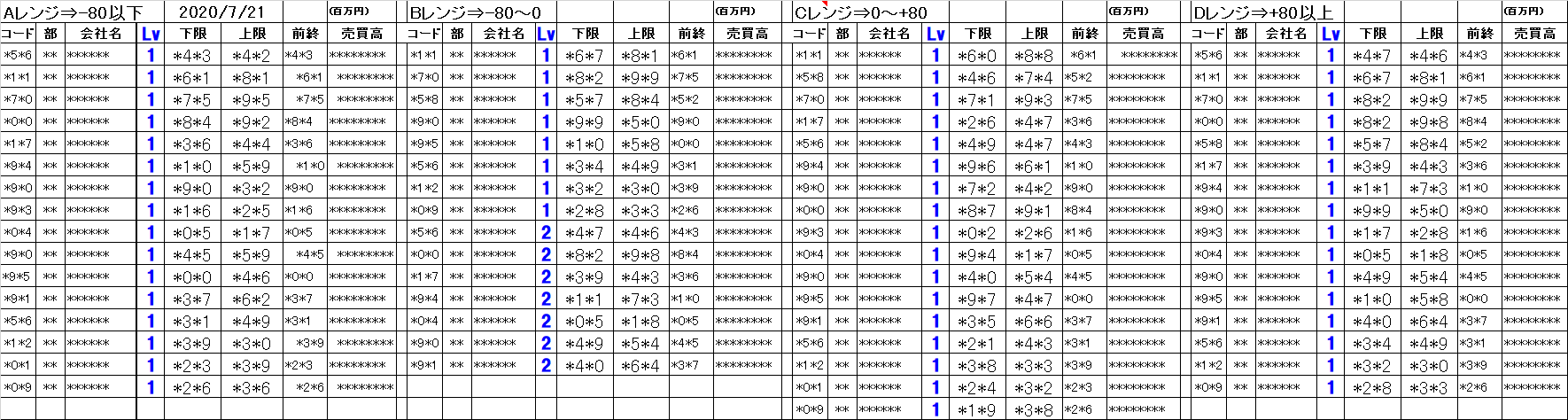 10/16 水曜日 今日のシステムトレードの仕掛候補一覧です。 今日の日経の寄り付きも大幅高でDレンジの仕掛けとなりました。 仕掛表の各レンジは前日終値比... ...続きを読む