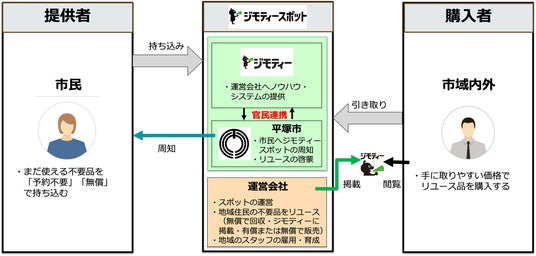 地域の情報サイト「ジモティー」(以下、ジモティー)を運営する、株式会社ジモティー(以下、当社)は、神奈川県平塚市とリユースに関する協定を締結し、ごみ減量に向けたリユース啓発を実施します。また、本協定に基づき、「ジモティースポット平塚」を2025年4月25日 にプレオープン(持ち込みのみ受付)、5月3日 にグランドオープン(販売も開始)します。ジモティースポット平塚は、当社の運営する官民連携型のリユース拠点において平塚市に初の出店となります。