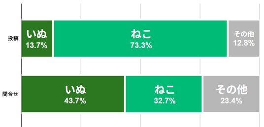 投稿される動物種別では猫が約7割を占める一方、問い合わせベースでは犬が4割を占めるなど、多様なニーズが存在します。
