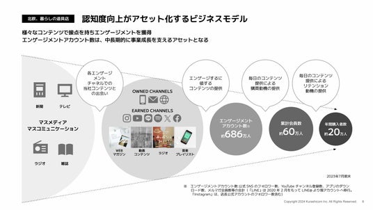 しかし2023年4月、当社初の密着テレビ取材が行われたテレビ東京系列「日経スペシャル カンブリア宮殿」、同年10月のTBSテレビ「THE TIME,」にて当社の特集が放送された際に、番組放送中だけでそれぞれアプリダウンロード数が6千DL超を記録し、Instagram・YouTubeなどのSNSにおいてもフォロワーが急増しました。さらに獲得したエンゲージメントアカウントを通じて、その後継続的に商品が購買されることを確認しました。