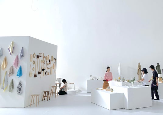 生活道具や食器、雑貨、アパレルアイテムなど「北欧、暮らしの道具店」で販売している商品約300点が並ぶ真っ白な空間の中をいきいきとした表情で巡ります。