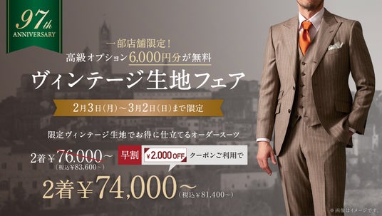 対象プランご利用で!本格オーダースーツ2着46,000円~(税込50,600円~)