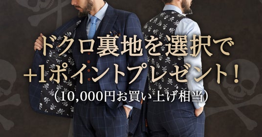 業界TOPクラス!240種類以上のスーツ裏地が選べる「GINZAグローバルスタイル」がドクロ裏地を選択で10,000円お買い上げ相当分のポイントプレゼントキャンペーン開始!