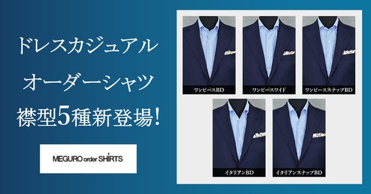 オーダースーツ専門店「グローバルスタイル」を運営するグローバルスタイル株式会社(東京証券取引所 スタンダード市場:7126、本社:大阪市中央区、代表取締役社長 田城弘志)は、一部店舗及びオンラインストアにて、新しいオーダーシャツの襟型5種類を追加いたしました。今回追加されたドレスカジュアルシャツは柔らかい襟が特徴です。ノータイやジャケパンなどのオフィスカジュアルから休日まで、幅広いシーンに着用できる新しいデザインになっております。