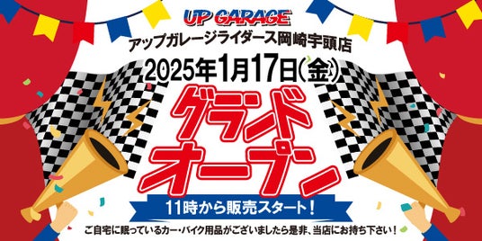 カー&バイク用品のリユース専門店「アップガレージ」を全国展開する株式会社アップガレージグループ(本社:神奈川県横浜市、代表取締役社長:河野映彦)は、2025年1月17日に、フランチャイズ店の「アップガレージライダース岡崎宇頭店」をアップガレージ岡崎宇頭店に併設して新規出店いたします。
