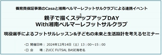 養育費保証サービス「養育費保証PLUS」を運営する株式会社Casa(本社:東京都新宿区、代表取締役社長:宮地正剛)は、12月14日(土)に「親子で描くステップアップDAY With湘南ベルマーレフットサルクラブ」を開催いたしました。