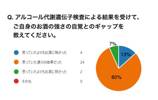 実施内容:「アルコール代謝遺伝子検査キット」での検査実施後の状態等についてアンケート