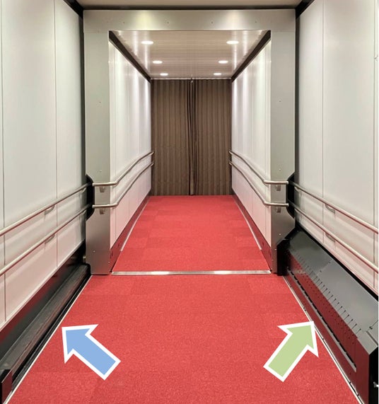 フルフラット構造を除き、バリアフリー化を図った搭乗橋におけるガーターおよびレール面部分の不可視化を世界で初めて実現。