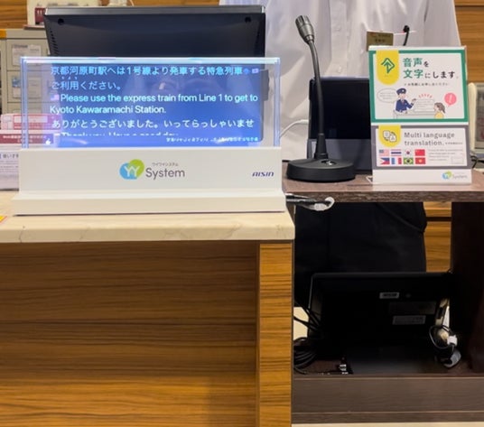 アイシンと阪急電鉄は、2025 年の大阪・関西万博の開催を控え、駅の利用客増加が見込まれる大阪梅田駅内の複数のごあんないカウンターで「YYSystem」を活用した窓口対応の実証実験を行ってきました。実証実験においては、駅員と乗客のコミュニケーションがスムーズになり、駅員の負担軽減と、乗客へのわかりやすいご案内が可能となったという反響が得られました。また、駅でよく使われる言葉や表現に適切に対応できるよう改善を図り、利便性を向上させたことで、本格導入に至りました。今後は、導入する窓口を順次拡大し、多くの利用者にとって便利な環境を提供したいと考えています。