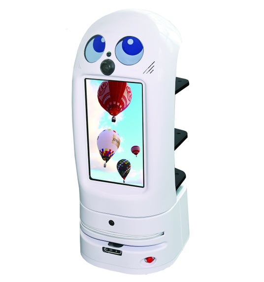 ・21.5インチタッチパネル型のデジタルサイネージと、1段あたり10kgまで積載できる取り外し可能なトレイを搭載(最大3段、合計30kgまで積載可)