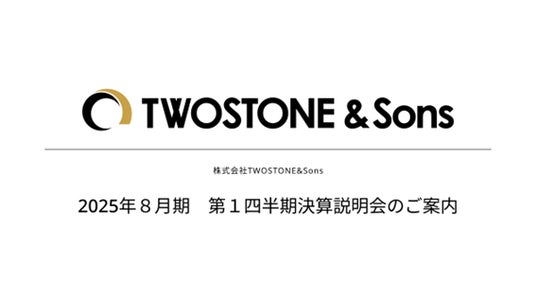 株式会社TWOSTONE&Sons(所在地:東京都渋谷区、代表取締役CEO:河端保志、代表取締役COO:高原克弥、証券コード:7352、以下 当社)は、2025年8月期 第1四半期決算説明会を下記要領にて開催させていただきます。