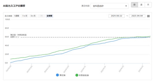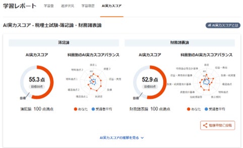 *上記のAI実力スコアの推移は、税理士講座・簿財2科目セットの例です。