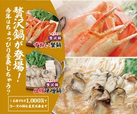 ※「ずわい蟹鍋」「牡蠣味噌鍋」をそれぞれご用意。コースがいつも以上に豪華に!是非、ご利用下さい。