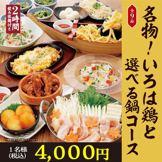 ●「名物!いろは鶏と選べる鍋コース」全9品