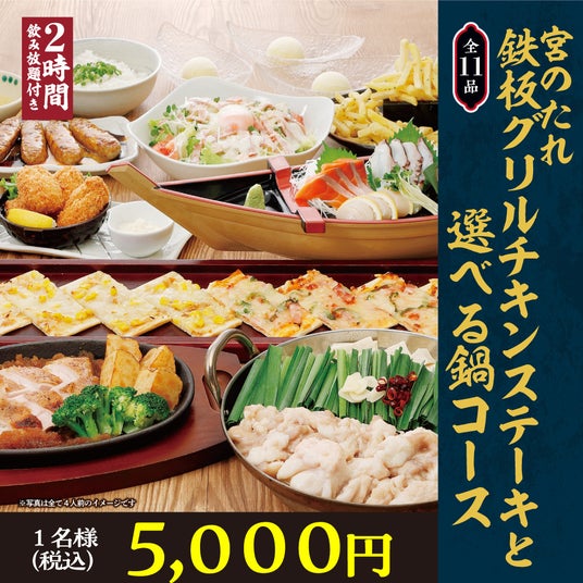 ●「宮のたれ鉄板グリルチキンステーキと選べる鍋コース」全11品