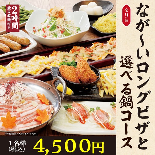 飲み会は久しぶりに「お店で」というお客様にピッタリのコース、飲み放題2時間付き・お料理全9品(選べる鍋付き)コースを4,000円よりご用意。更にグレードの高い4,500円・5,000円コースもご用意し満足感間違いなしです。お鍋はコースに応じて「定番牛もつ鍋」「濃厚豚味噌鍋」「鶏すき鍋」から選択でお楽しみ頂けます。もっと豪華にというお客様には1名様プラス1,000円で「ずわい蟹鍋」「牡蠣味噌鍋」もご用意可能です。