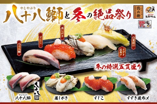 にぎりの徳兵衛、海鮮アトム等50店舗で冬の新メニュー登場!脂のり最高、ぶりの旬到来!牡蠣やすじこなど冬の絶品大集合「八十八鰤(やとやぶり)と冬の絶品祭り」2024年11月12日(火)~1月13日(月)