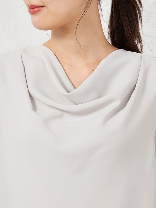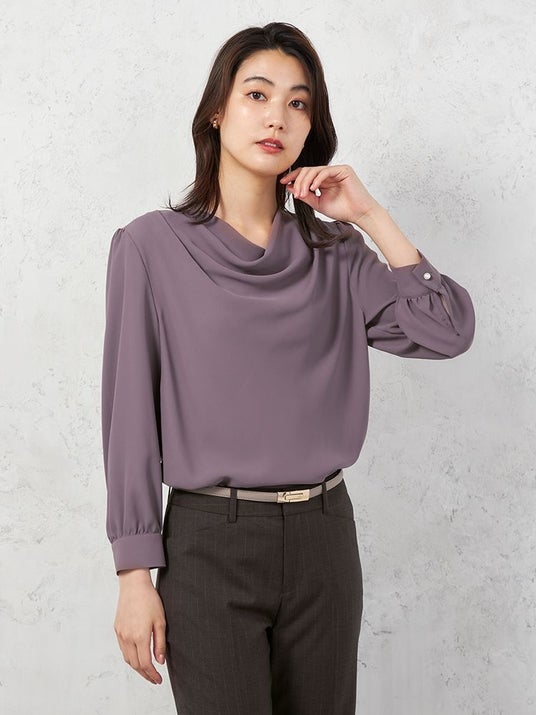 ■上品な光沢で高級感を演出し、1枚でもジャケットインでもきちんとキレイ見えする万能ブラウス