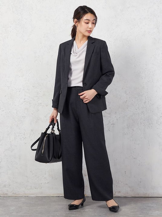 このたび発売したブラウスは、ほどよく上品な光沢が高級感を出してくれるラチネ織りを採用しています。スーツインでの着用はもちろんのこと、一枚でも様になるのでオフィスカジュアルスタイリングでも活躍。さらには、きれいめな装いがマストなオケージョンシーンでも着回しができる万能なシーンレスアイテムとなっており、一枚あるとスタイリング幅が広がるブラウスです。