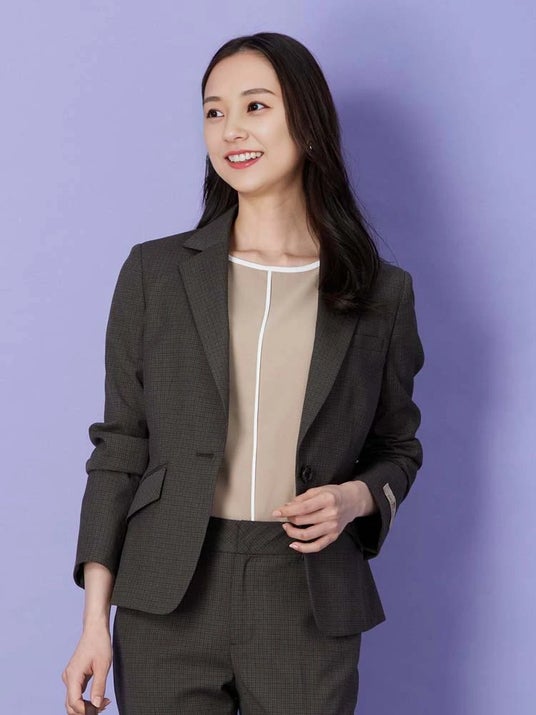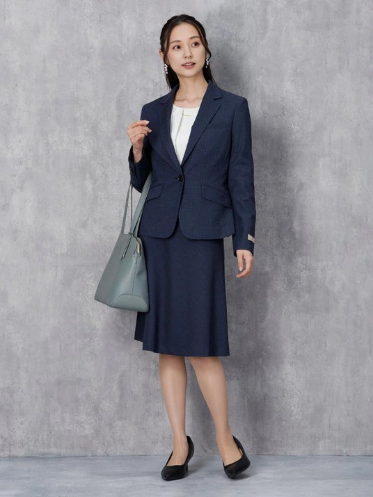 また、デザイン性だけでなく機能面も充実。上下ウォッシャブルでご自宅でのケアが簡単&ストレッチ素材で着心地もラクなビジネスシーンにおすすめの一着です。