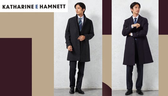 「KATHARINE E HAMNETT」は今を生きる30代男性のライフスタイル、リアルクローズに着目し、ビジネスシーンにマッチする様々なスタイリングアイテムを提案しています。このたび発売する「ブリティッシュウールスタンドカラーコート」、「イタリアマンテコ社製ウールチェスターコート」はスーツのアウターとして着用することを考えたベーシックなデザインと、風合いや肌触り、上品さにこだわった素材感がポイントとなっており、ビジネスシーンをはじめフォーマル・ドレッシーなスタイリング、セットアップやデニムなどデイリーウェアとも合わせやすい万能コートに仕上げました。