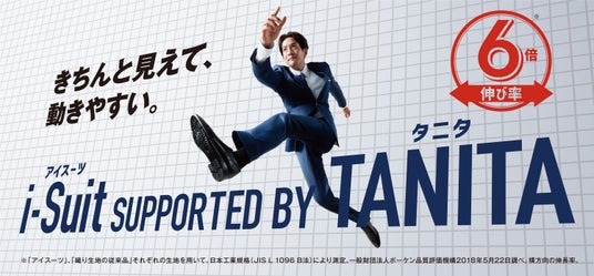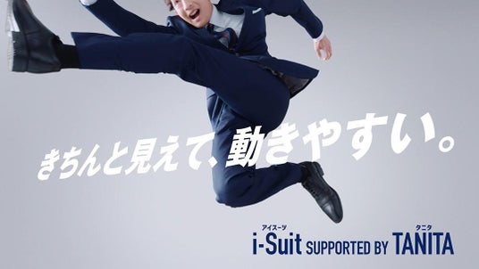 CMでは、TANITAが実証した商品の最大特長である「高ストレッチで高い伸縮性によって叶う動きやすさ」※2を「きちんと見えて、動きやすい」という端的なメッセージで訴求。ビジネスシーンのスーツ姿から、大きく脚を開いてジャンプするという大胆な演出で商品の特長を表現しました。忙しい日常を過ごすビジネスパーソンへ向け、きちんと見えてラクな着心地で、ストレスフリーな着用感の『i-Suit SUPPORTED BY TANITA』の魅力を広く伝えることを目的に制作いたしました。多くのお客様へ『i-Suit SUPPORTED BY TANITA』の魅力を広く伝えていくとともに、今後も「科学で着るを、変えていく」をテーマにした商品開発と提案を行ってまいります。