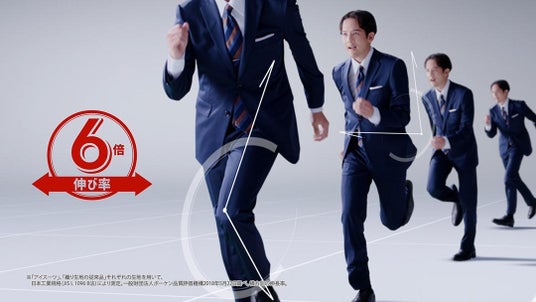 ■スーツ姿での大きなジャンプが“きちんと見えて、動きやすい”を表現した新CMで商品特長をアピール