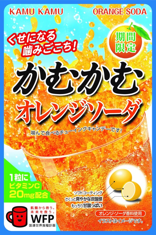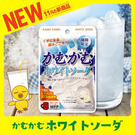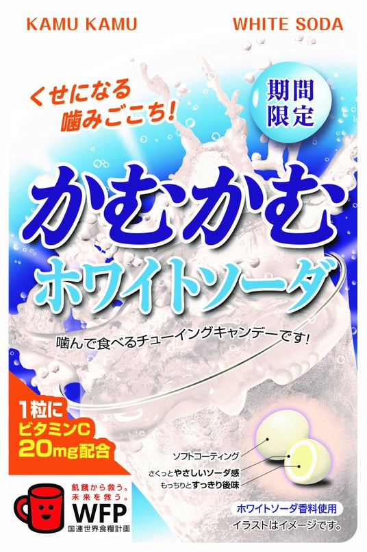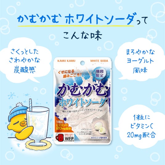 ヨーグルト風味のソーダ感が際立つ「かむかむホワイトソーダ」で美味しさを楽しんでください!