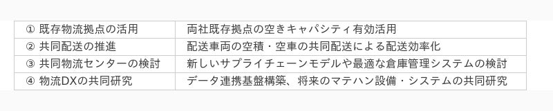 本基本合意において、まずは4つの協業テーマを定め、実現に向けて協議・検討を進めてまいります。