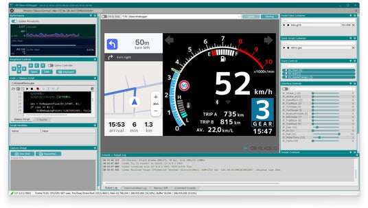 「CRI Glassco」は、モビリティのデジタルメーターを開発・制御するための映像開発用のソフトウェアです。デジタルメーターのモデルを制作するツールと完成したモデルデータが実機で動くランタイムライブラリを併せ持ち、デザイナーが作成したモデルを手元の実機ですぐに確認できるのが特長です。