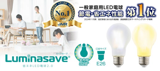従来LED電球よりも電気代を約45%カットした省エネLED電球「ルミナセーブ」が一般家庭用LED電球の節電・省エネ性能第1位を獲得