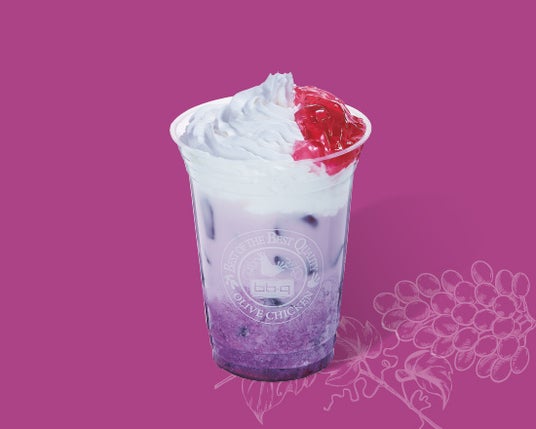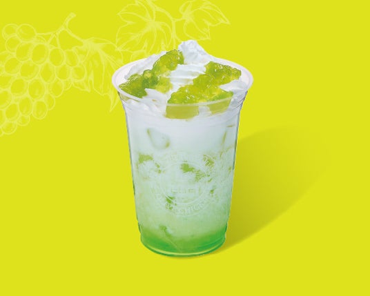 ぶどう果汁たっぷりと使用したシロップとヨーグルトドリンクで、甘さ、濃さ、酸味のバランスよく仕上げました。トッピングされたぶどうゼリーが食感と香りをプラスして、紫のグレープ色がかわいい一品です。