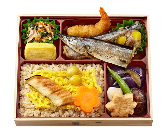 毎回大好評の特別弁当に、“秋刀魚”が初登場!株式会社モリヤが取得した製法特許を活用し(*)、塩焼きの香ばしさはそのままに骨まで柔らかく仕上げ頭から尾まで食べられる秋刀魚が、丸ごと一尾入った贅沢なお弁当です。その他、「穴子の彩りご飯」や「もみじがんもと野菜の炊き合わせ」、「きのこの白和え」、栗の甘露煮と渋皮煮を両方使った甘味の「甘栗サラダ」など、秋の味覚が堪能できる特別弁当を、この機会にぜひお試しください!