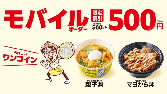 「特製タレ使用 マヨから丼」モバイル オーダー価格500円(税込)