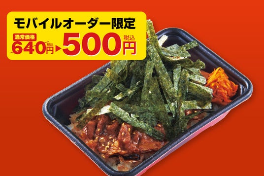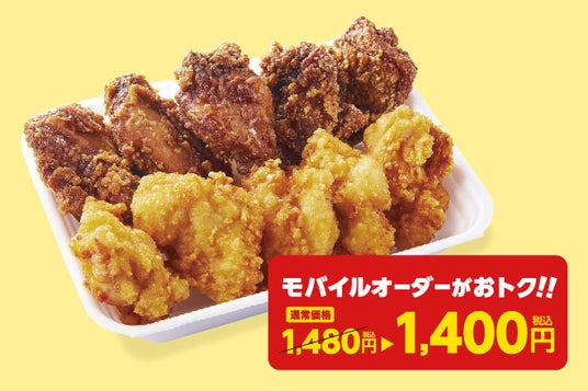 モバイルオーダーからのご注文限定で、人気の「のりカルビ弁当」が140円OFFの500円(税込) や「から揚げ屋さんの親子丼」が60円OFFの500円(税込)、自分好みの10個のから揚げを選べる人気の「ファミリーパック」が80円おトクな1,400円(税込)で販売しております。