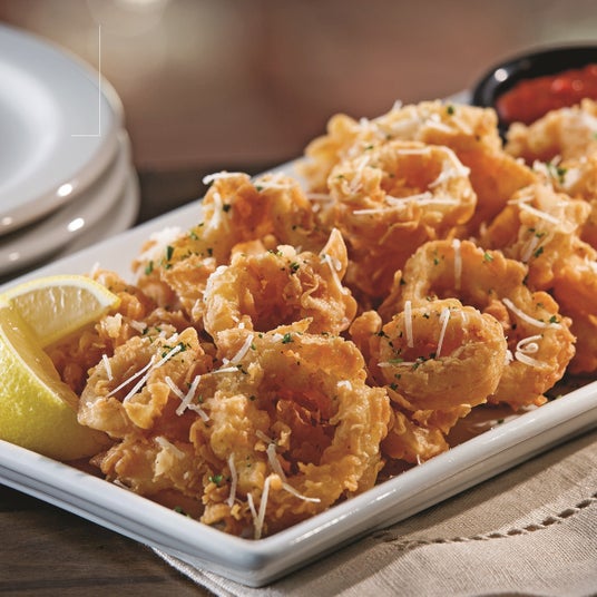 イカのリングに特製の衣をつけサクサクにフライし、ジューシーに仕上げました。パルメザンチーズをトッピングしアクセントを加えました。マリナラソースをつけてお召し上がりください。