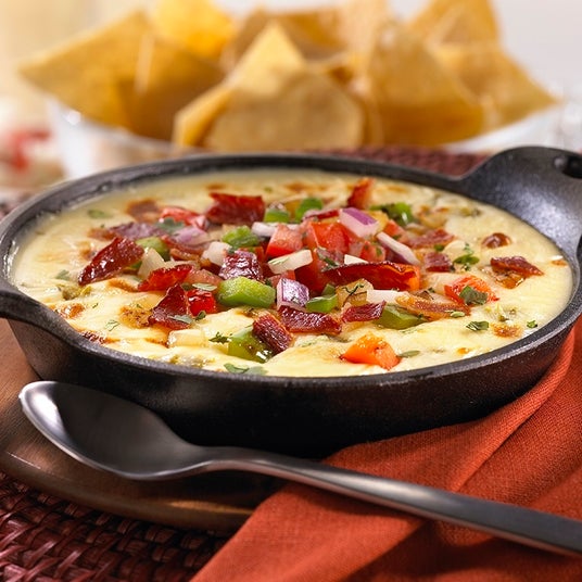 モッツァレラチーズをたっぷりと使用したスパイシーでクリーミーなケソブロンコソースにピコデガヨ、ペッパーオニオンメドレー、ベーコンをトッピング。チップスにディップしてお楽しみください。