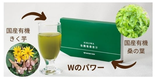 今回、自社の農場で栽培した有機菊芋としまねオーガニックファームの桑の葉をダブル配合した青汁を発売いたします。ご利用いただきやすいように、1回分ずつスティック包装しています。また、顆粒タイプの製品で水でも溶けやすくなっている製品です。今後もワタミファームはワタミオーガニックの商品の認知拡大、販売を継続していきます。