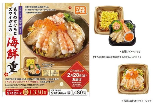 ワタミ株式会社(本社:東京都大田区、以下ワタミ)が運営する食事宅配サービス「ワタミの宅食」は、季節限定の特別弁当として「炙りのどぐろとズワイガニの海鮮重」を1月23日(木)より販売開始いたします。