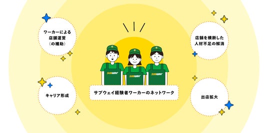 これらの取り組みを通じて、サブウェイ経験者ワーカーによる関係従業員(※2)を増やしネットワークを形成することで、店舗横断による人材確保を通じたシフト構築の実現も目指します。