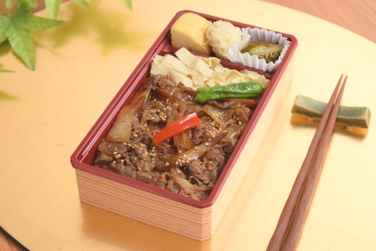 甘辛く炊き上げた黒毛和牛に付け合わせの梅の花の湯葉煮、さらに豆腐しゅうまい、湯葉揚げも楽しめる牛めしのお弁当です。食欲の秋のこの季節にぜひお召し上がりください。