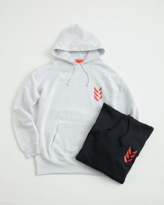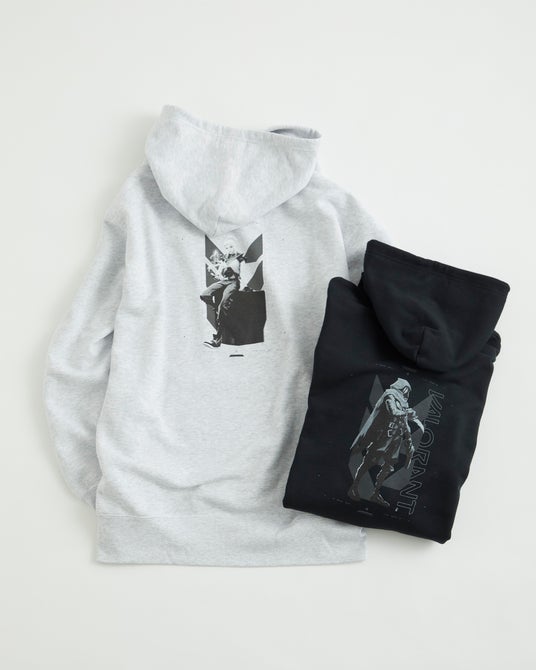 通年使いやすい裏パイルのスウェットパーカー。ボリュームが出過ぎずアウターの中に着用してもシルエットを崩しません。バックには今回のキーであるエージェントのグラフィックとVALORANTのロゴを組み合わせたオリジナルデザインをプリントで表現。胸にはVALORANTの3連アイコンをカラーでプリントし、アクセントにしました。